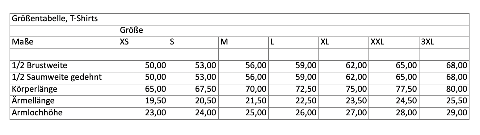 Die Tees sind aus Open End Single Jersey, 220gr/sqm, 100% Baumwolle (Bio)